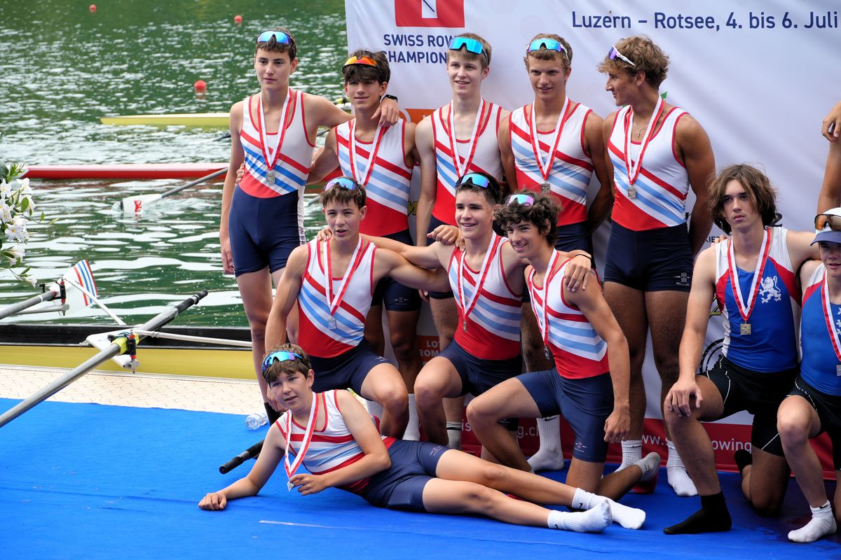 Der U17-Achter lieferte ein packendes Rennen und wurde Vizeschweizermeister. Diese Silbermedaille ist Resultat von diszipliniertem Training und einer Gruppe, die über die Saison stark zusammengewachsen ist. Ein wahres Highlight des Wochenendes. Im Doppelvierer holten Lucian, Robin, Filip und Merlin Bronze, ein zweites Luzerner Boot erreichte Rang sechs. Auch im Einer gab es Grund zur Freude: Rocco Blattner kämpfte sich mit einem starken Endspurt auf den 3. Rang.