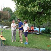 Nach den Rennen hiess es: Ab an den Grill! Wolfgang hatte die Zange fest im Griff und servierte Salat und Würste, die genauso schnell vom Rost verschwanden, wie die Boote über